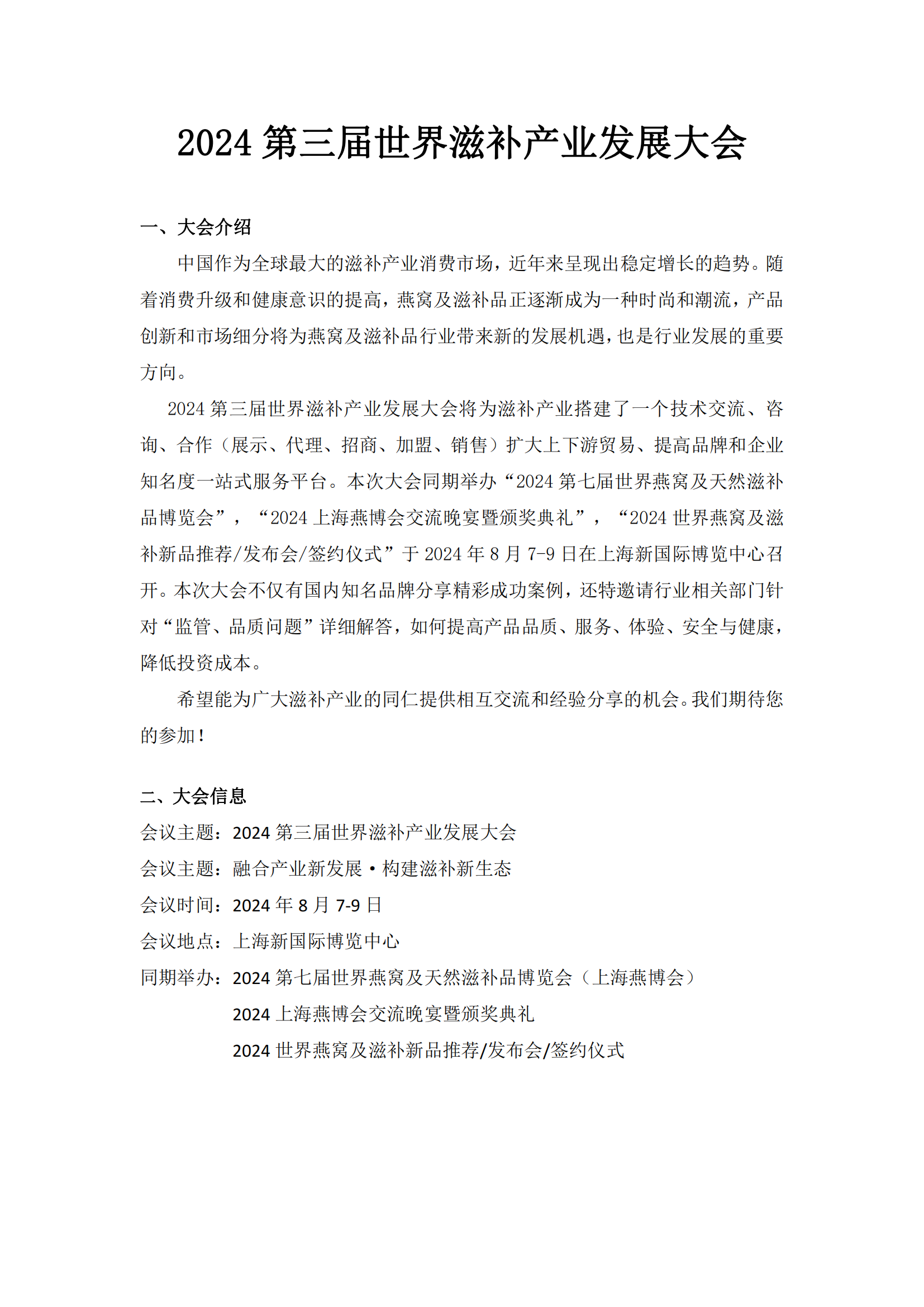2024 第三屆世界滋補產(chǎn)業(yè)發(fā)展大會