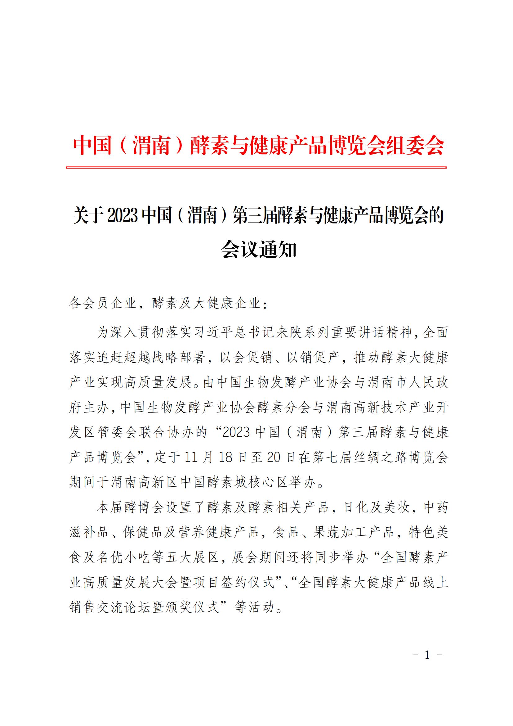 關(guān)于 2023 中國(guó)(渭南)第三屆酵素與健康產(chǎn)品博覽會(huì)的 會(huì)議通知