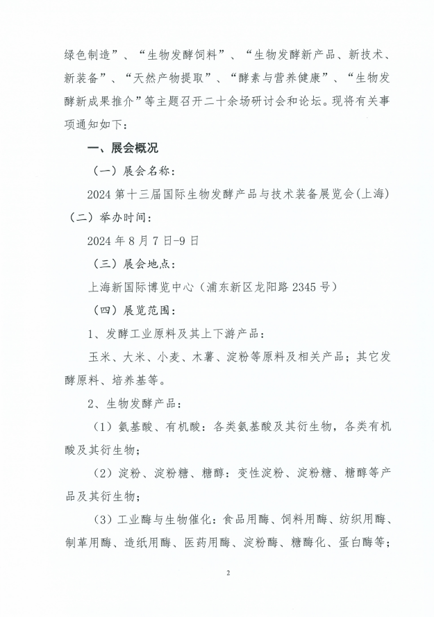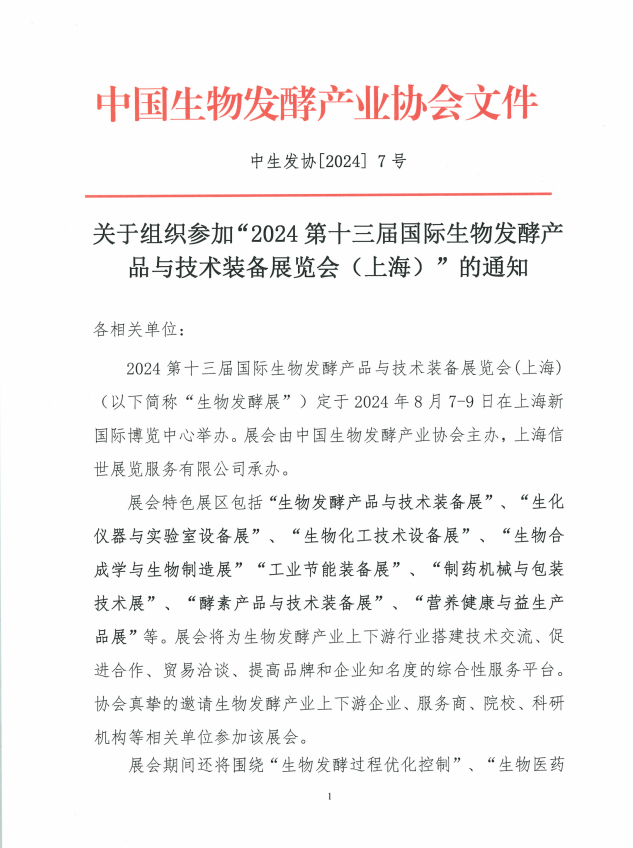 關(guān)于組織參加“2024第十三屆國際生物發(fā)酵產(chǎn)品與技術(shù)裝備展覽會(上海)”的通知